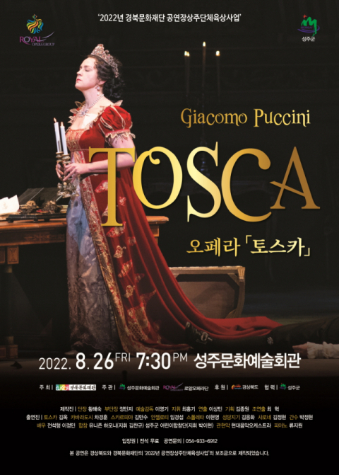 푸치니의 오페라 '토스카'가 26일 오후 7시 30분 경북 성주문화예술회관 대공연장 무대에 오른다. 이 극장 상주단체인 로얄오페라단(단장 황해숙)이 제작해 선보이는 작품이다.