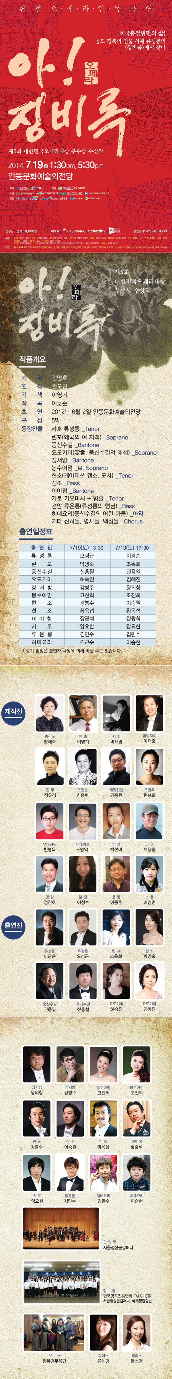 | 창작오페라, ‘아! 징비록(懲毖錄) -2013. 7. 5(금) 7:30, 7.6(토)1:30, 5:00 -KBS홀 (0) | 2023.03.10 |