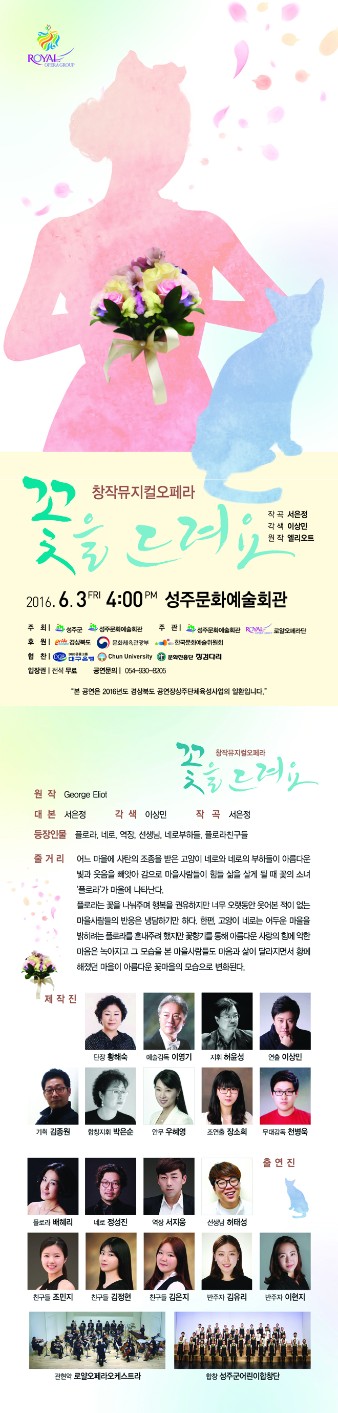 | 공연제목 : 창장뮤지컬오페라 <꽃을드려요> |